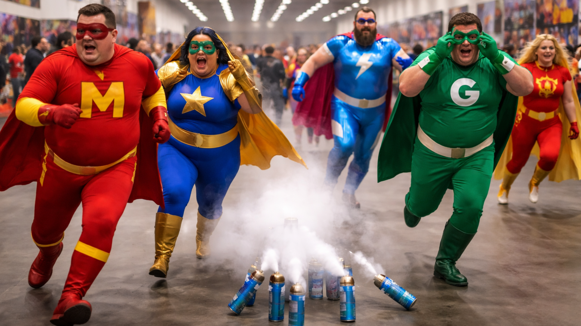 SEATTLE, WA – Pandemonium broke out at the 24th Annual Emerald City Comic Con yesterday when a yolked, MAGA-hat wearing radical launched a barrage of Axe Body Spray cans – dousing hundreds of attendees in Gold Temptation, Ice Chill, and Black Night scents. While there were no fatal casualties, 33 morbidly obese individuals in full body costumes were hospitalized as the pre-pubescent scents mixed with extreme body odors, creating a toxic byproduct that made it difficult to breathe. Law enforcement officers stationed at the event quickly apprehended the suspect and bought him a round of beer at a nearby bar for helping them get out of their smelly assignment.