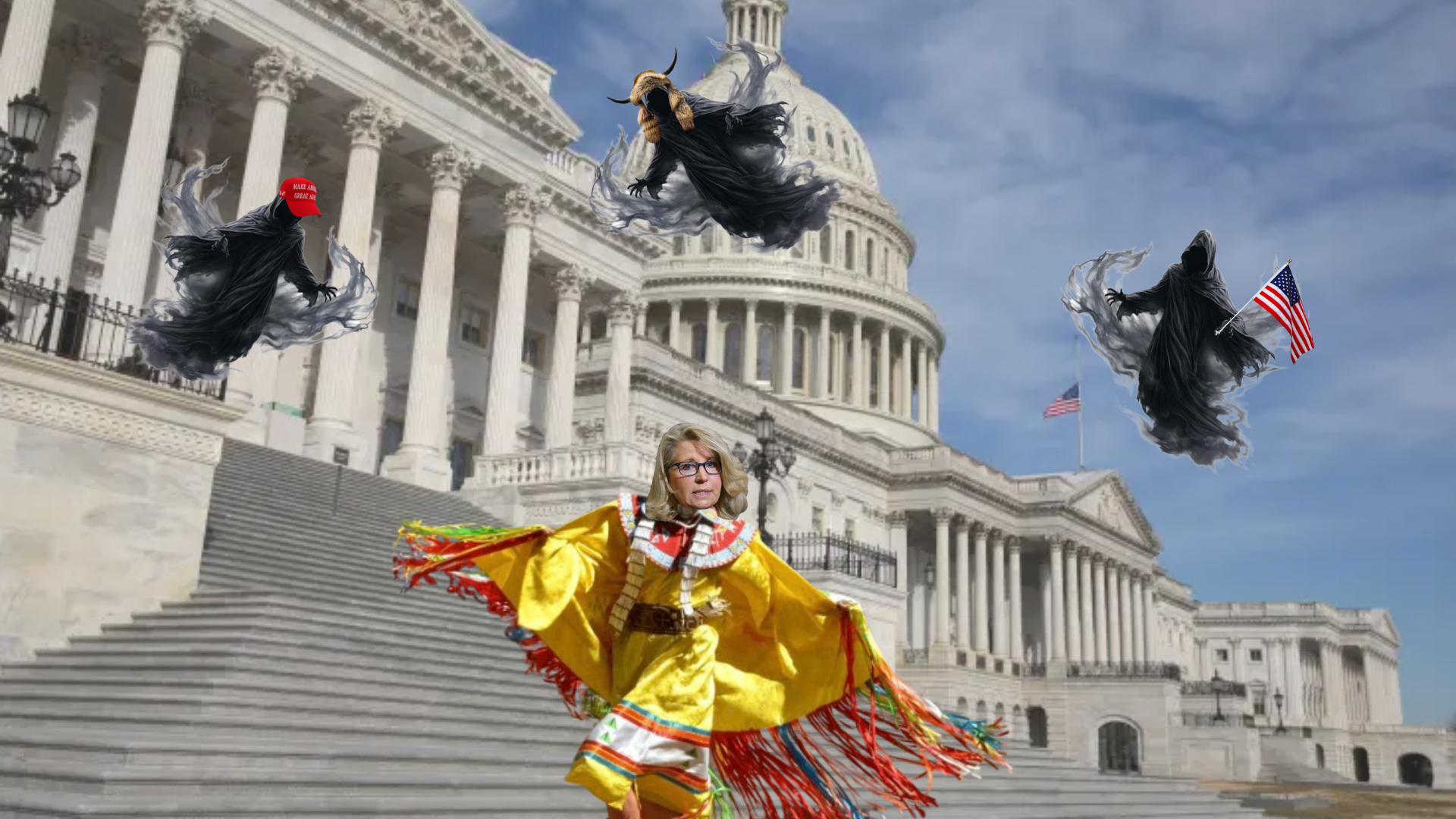 “Every day since I left Congress, the ghosts of January 6 have followed me and have cast a dark shadow over my family,” Cheney told The Gas Lamp. “The other night, they sent me a message saying that they were heading to Washington, D.C. to celebrate the inauguration of President Trump and oversee the complete destruction of the United States of America. Thankfully, I’ve spent years training to cast these evil spirits away and have assembled my friends from the Arapaho tribe to help me perform a centuries-old dance that will prevent these demons from hovering over our democracy any longer.”